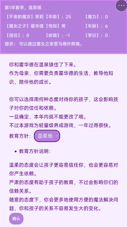 在养育过程中,玩家需全程参与命名、教育理念设定、价值观引导等关键环节。不同教养方式将显著影响子女的性格养成、职业选择与最终人生归宿。领养数量不限,玩家亦可培育出具备永生资质的“魔女二代”,由此衍生出数十种差异化结局路线,每条路径均有独立文本支撑与情感闭环。