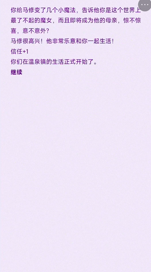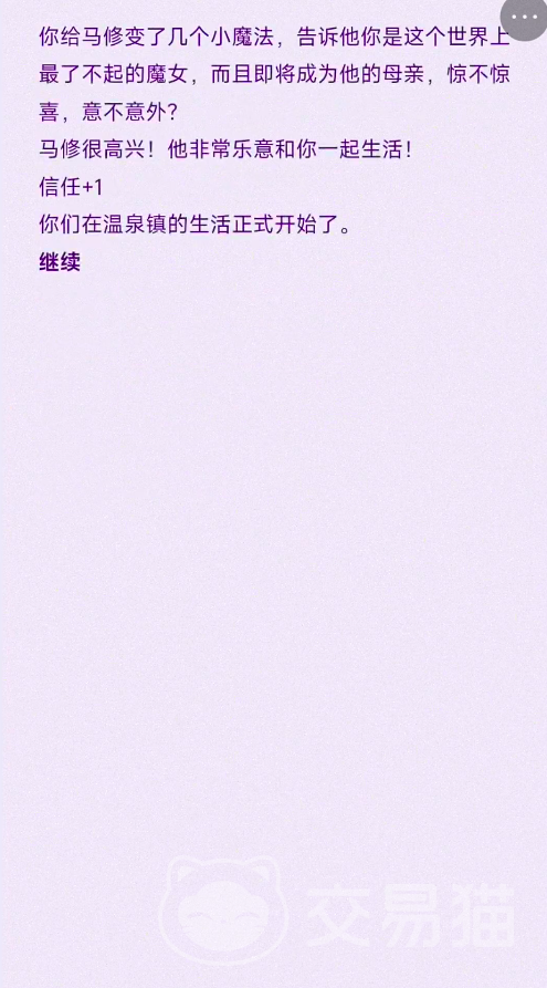 全文字呈现形式释放了玩家想象力边界,支持高度自由的角色互动与情境探索。玩家可随时查阅所领养“魔女之子”的成长档案、性格倾向与关键事件记录。为增强叙事纵深感,游戏内置双线复活机制:若二代角色持有“复活液”,即可令已故一代子女重返剧情主线,触发全新分支路径与多重结局组合。