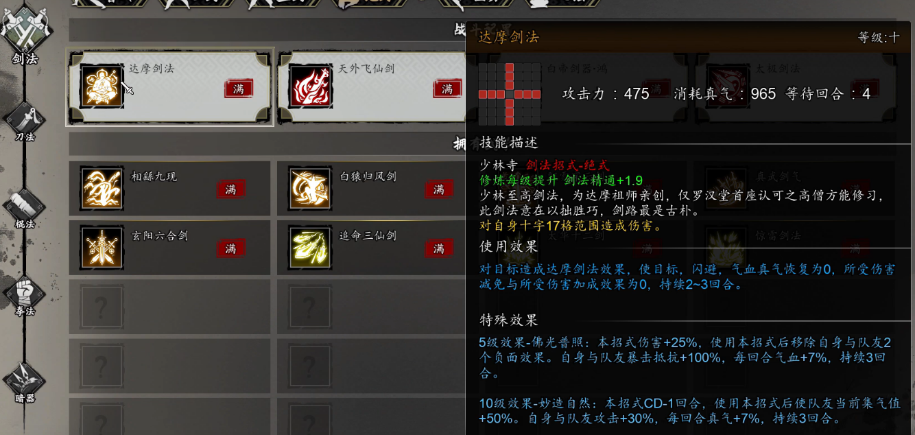 尽管达摩剑法获取流程较长,但其强度表现与附带收益完全匹配难度设计。除主武学外,全程还可顺带习得多项高阶功法,资源转化效率优异。合理规划任务节奏,即可稳定达成最终目标。