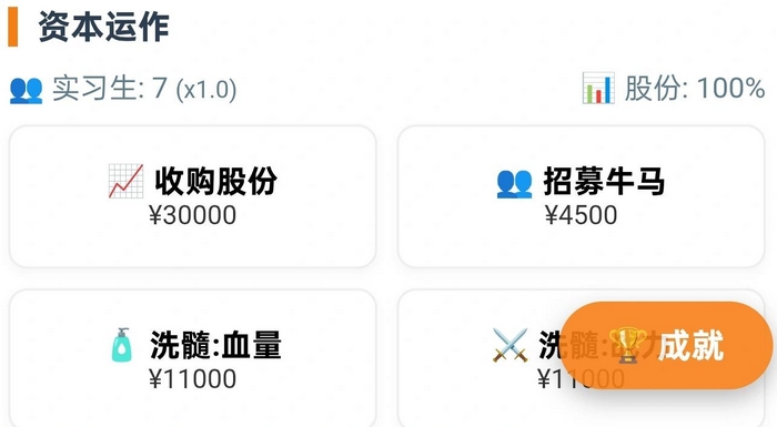 游戏核心玩法围绕“职场晋升即境界突破”展开:玩家需完成KPI任务以获取灵石与功法残卷;雇佣实习生组建“牛马小队”,协同产出绩效点数;收购公司股份稀释监管权重,降低Boss巡查频率;甚至可通过灵石注入洗髓池,实现战力跃迁——所有设定均映射真实职场逻辑,兼具趣味性与思辨性。