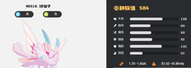 生命值(HP)方面,绒仙子以162点基础HP稳居前列,赋予其极强的持续作战能力。其专属机制为:队伍中每存在一个属性不同的精灵,即可提升自身10点速度,因此在多属性混搭阵容中能显著掌控行动顺序。若暂未获得该精灵,蹦床松鼠是理想替代方案——161点HP仅低1点,在容错率与战术延展性上同样具备较高实用性。