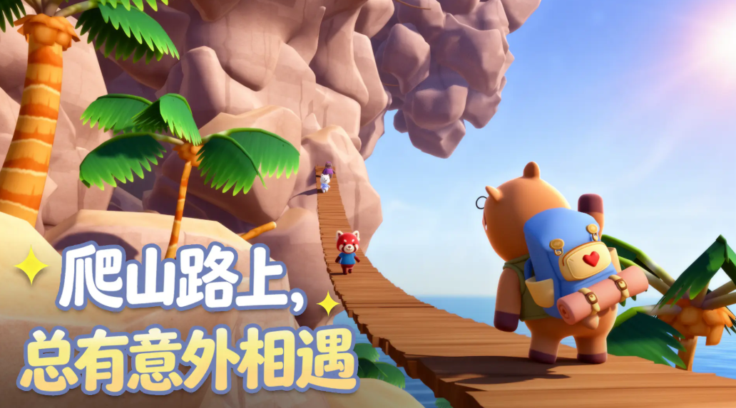 本作以拟真物理交互为底层设计逻辑,强调玩家间动态协同。每位玩家操控一只个性鲜明的小动物角色,在攀爬过程中需实时响应地形变化:例如在垂直岩壁前,可主动伸手拉拽队友实现接力上升;在跨越宽幅断崖时,需由一名玩家蹲伏为支撑点,供他人踏肩跃过。游戏支持智能匹配及房间码组队两种联机方式,所有关卡均需至少两名玩家共同完成,协作深度直接影响通关效率与趣味性。