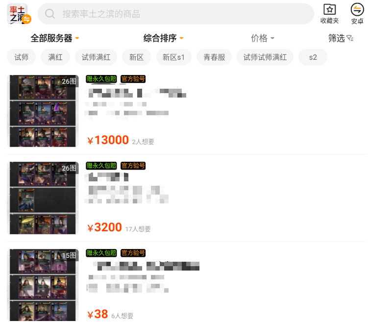 除了新区之外,这种策略、收集向的游戏想要在老区入坑还是很难融入的,这时候直接买个脱坑账号就是个不错的选择。交易猫平台几乎涵盖了市面上所有的游戏品类,并且贴心地设置了各个游戏的专区,只用搜索关键字就可以快速进入到专区页面并看到在售的各类账号或商品。安卓用户点击上方链接即可下载体验,IOS用户也不用着急,直接搜索交易猫官方网站即可。