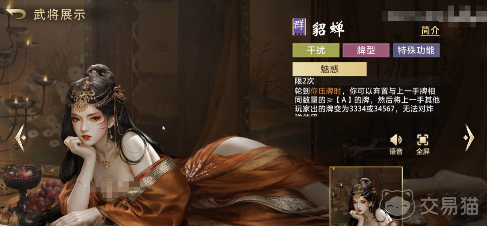 貂蝉在《三国百将牌》中并非以高伤爆发见长,而是凭借精妙的节奏调控与心理压制能力,成为团队控场体系的核心枢纽。本文将围绕其技能机制、实战释放逻辑及阵容适配性展开解析,帮助玩家深入理解这位兼具策略深度与操作上限的武将。