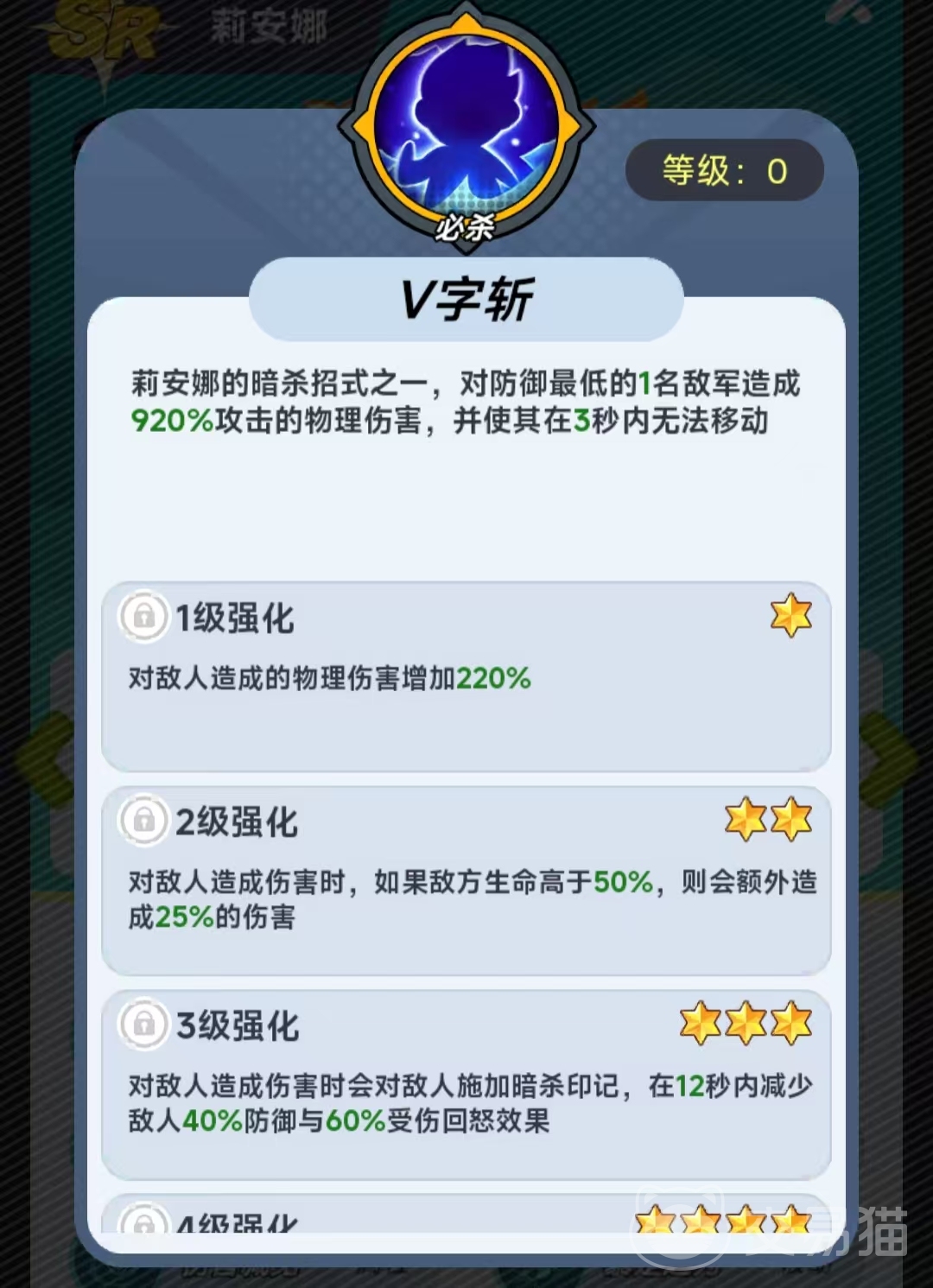 莉安娜的定位明确:专注单目标高伤压制。其基础主动技能【暗杀招式】可对单一敌人造成750%攻击力的伤害,并附带3秒强制控制效果。该特性使其在PVP对战、塔防挑战等强调精准打击的玩法中表现稳定,既能快速瓦解敌方关键单位,又能为己方创造战术窗口。