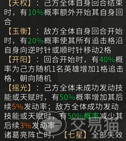 摇光天赋进一步强化其功能上限:可降低敌方技能及天赋的触发概率,有效克制依赖高频特效的阵容。随着角色等级与阶级提升,“北斗七星”整体效能同步增强,且支持根据队伍配置灵活调整星辰激活倾向——例如主力输出为物理系时,可侧重强化天枢、天璇等增伤星轨,从而实现全队输出效率跃升。无论单兵作战还是团队协作,诸葛亮均能承担枢纽角色,成为衔接攻防转换的关键节点。
