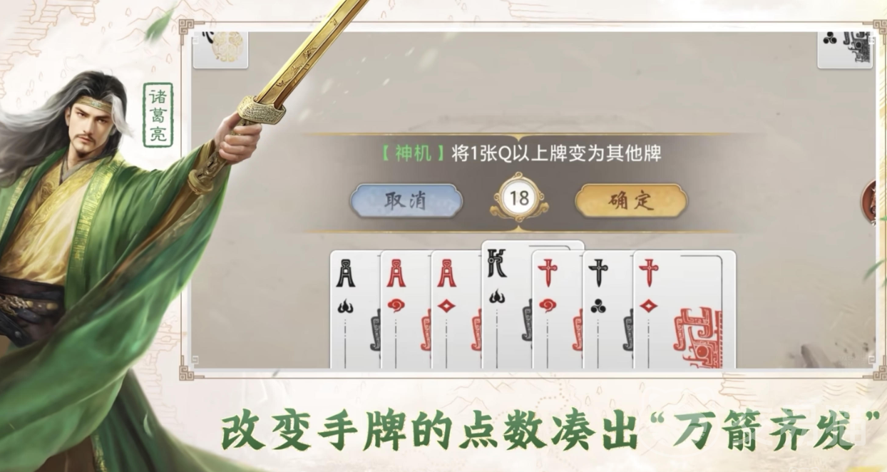 诸葛亮定位为高阶信息管控型武将。“妙算”技能支持开局阶段探查底牌,为全局资源规划提供数据支撑;“神机”技能允许将手中点数大于K的卡牌重构为任意所需牌型,直接优化手牌结构并保障后期爆发输出。二者协同要求玩家具备局势预判能力、手牌概率推演意识及精准的技能激活时序判断。熟练运用可实现关键回合牌型最优化,使其成为阵容中的战略枢纽与节奏调控核心。