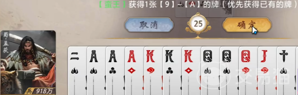 这一机制赋予孟获显著的抗压能力与节奏调控潜力。在前期对局中,即便频繁遭遇压制,也能持续补充高点数牌,缓解手牌枯竭风险;进入中后期后,七次触发完成所激活的三张高点数牌转移,不仅能强化队友关键回合的出牌强度,亦可打乱对手预判——例如将A与K转给主攻位,或向控场位输送Q+J以构建连击链。实际使用中,需同步关注自身点数分布、压制发生频率及队友手牌结构,方能实现技能收益最大化。