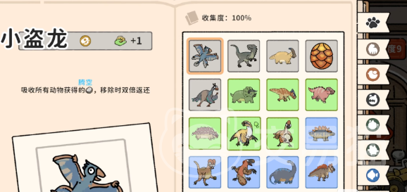 开局角色选择将直接影响整体发育曲线。推荐优先选用“猫神丽莎”与“仿生鱼”组合:前者可额外增加一次新角色解锁机会,后者虽减少一个初始动物位,但能立即复制一只已拥有的动物,形成早期资源复利。二者协同可有效提升稀有卡牌出现概率,为风神翼龙的获取打下坚实基础。在初始恐龙配置上,应明确锁定迅猛龙——因其三只同阶即可合成一枚化石,是前期最稳定、最可控的化石来源,远优于慈母龙等侧重孵化数量但产出低质单位的选项。