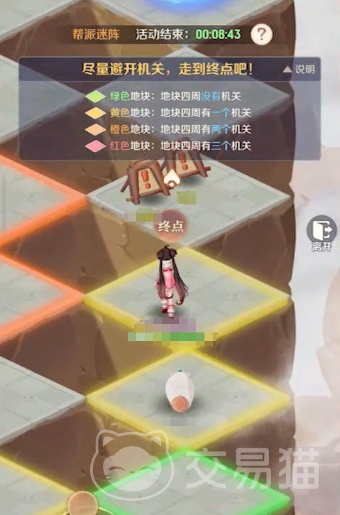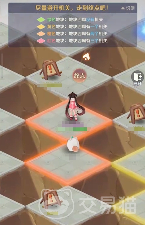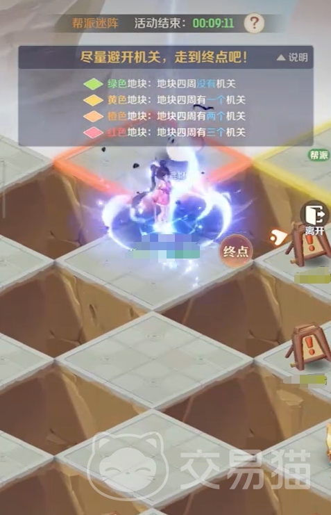 若活动初期参与人数较少,地图上警示标记覆盖不足,玩家需结合颜色提示主动探路。例如:站在黄色格子上,若向某一邻格移动后触发落雷,则剩余三个邻格中必有且仅有1个为机关格,其余两个即为安全路径。通过此类排除法逐步验证,可推导出唯一可行通路。成功抵达终点后,系统将即时发放通关奖励。