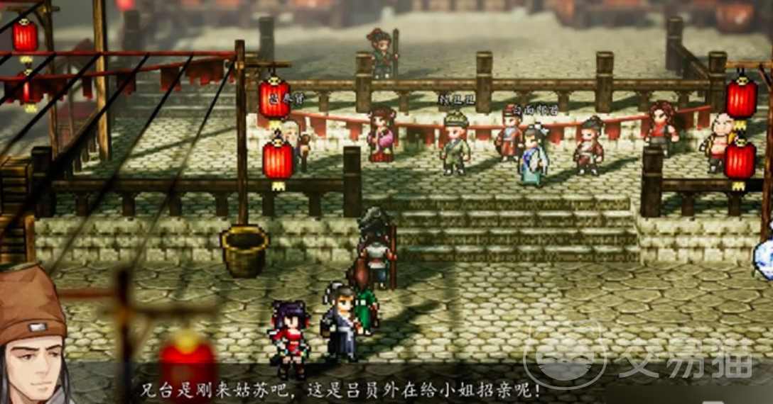 进入姑苏城后,于主桥下方右侧位置可发现一个可交互木箱,开启后可获取基础补给资源。随后场景切换至红灯笼布置的比武擂台区,正式开启任务主线。与NPC吕丰贤对话后,流程进入实战阶段,需依次击败王胖子与最终BOSS夜猫子。其中夜猫子作为压轴对手,除2800点固定血量外,核心威胁在于“含沙射影”暗器技——该技能具备远距离、多段判定与高额伤害特性,需针对性规避。