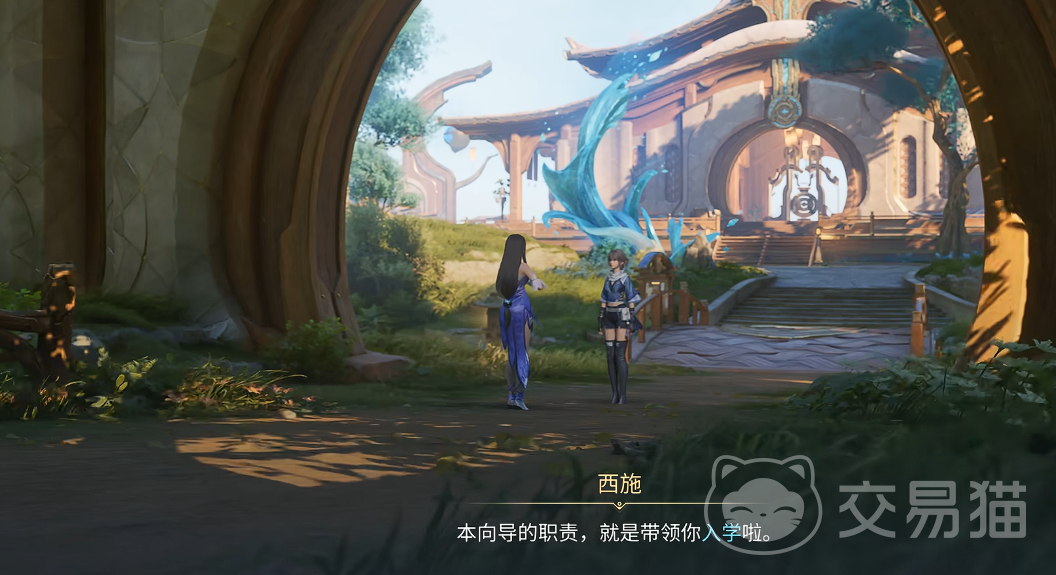 游戏开场后,玩家将在学院主校区入口处首次遇见西施。她身着青白相间的长裙,手持流光玉简,以温和而坚定的语气开启主线序章。通过初始对话,玩家将被邀请跟随她前往学院正门——这一过程不仅完成场景过渡,更自然引出世界观铺垫。