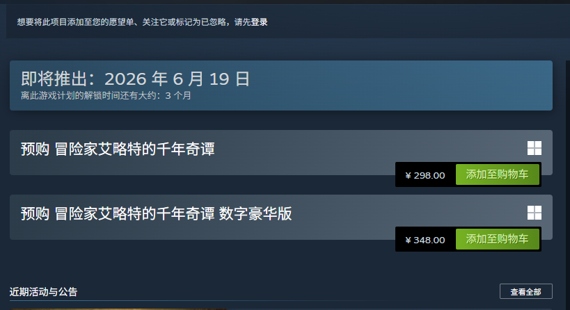 备受期待的2D美术风格动作冒险手游《艾略特的千年奇谭》(原名《艾略特的千年物语》)即将于6月19日正式登陆Steam平台。本作采用HD级画面设计,融合先进3D渲染技术,在视觉表现与动作流畅度上实现双重突破。不少玩家关心其定价策略:目前Steam页面已明确公示,标准数字版预购价为298元,数字豪华版为348元。预购即享专属特典——全版本通用道具“启程胸针”与增益型消耗品“剑魔石”,可直接提升角色初始攻击力。豪华版额外追加三款限定装饰:“妖精手镯”“樱花脚环”及“罗洁尔戒指”,均具备独立属性加成与剧情互动价值。