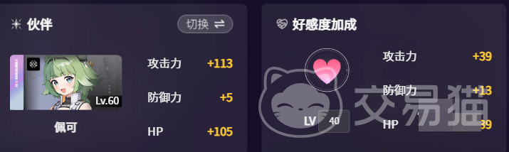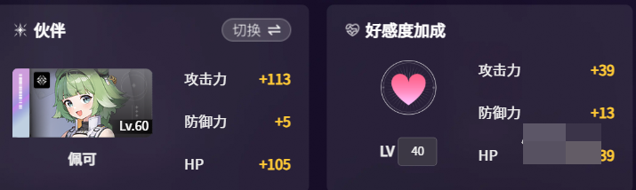 在阵容搭配方面,建议优先选择具备攻防双增能力的协作者。猎人佩可(60级)是当前最优解之一:在双方好感度达标前提下,可为赛雷尼尔提供+39攻击力与+13防御力;同时激活赋能效果,额外赋予10%基础暴击率,并有概率再触发12%暴击率加成。这一组合不仅强化了输出强度,也提升了持续作战能力与容错空间。