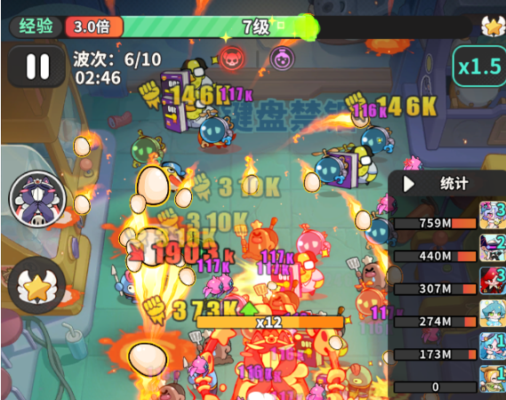 她的基础攻击“火鸟冲击”,以弹跳鸡蛋为载体,落地即爆,可在敌阵中多次反弹并触发连锁爆炸,形成多段AOE伤害,高效清理低阶梦魇单位。核心技能“大火收汁”则承担战略级控场职能:解锁后永久提升10%暴击率;每30秒自动投掷一枚巨型魔法火锅,火锅持续加热期间,对周围目标施加高额持续灼伤效果,是压制集群敌人不可替代的战术支点。
