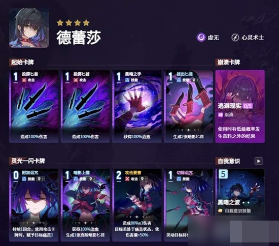 在装备配置方面,特蕾莎优先选择“虚无的启示”,该装备出自雾之都市“虚无牧者”事件,可使其在使用攻击类卡牌时获得超过20%的护盾值。这一特性显著提升其在高压环境下的站场能力,契合奶刀流对主C生存的刚性需求。配合其0费技能“拔出匕首”,不仅能强化单把暗影匕首的伤害,还可直接增加匕首数量,进一步放大输出密度。