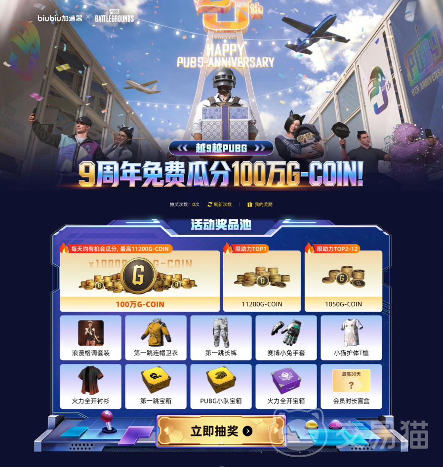 biubiu加速器同步推出周年庆专项支持计划,活动周期为3月11日至4月5日。使用该工具运行《绝地求生》,可显著提升连接稳定性与响应效率。用户可通过完成日常任务积累抽奖机会,参与9周年百万G币全民瓜分活动,并有机会抽取浪漫格调套装、多款限定时装宝箱等实物级奖励。