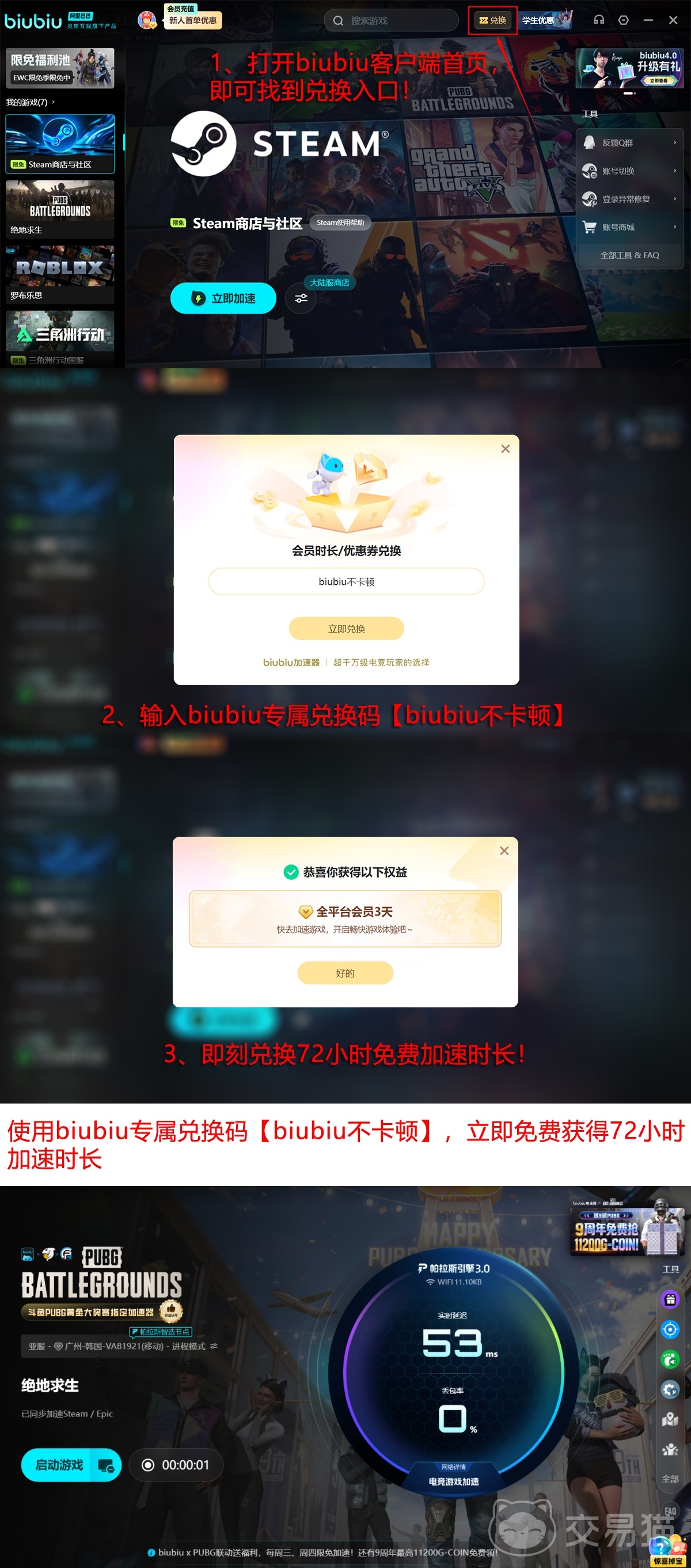 新用户注册后可立即获得24小时免费加速时长;再输入专属口令biubiu不卡顿,还可额外续享72小时服务权限,全程助力玩家高效参与各项周年活动。