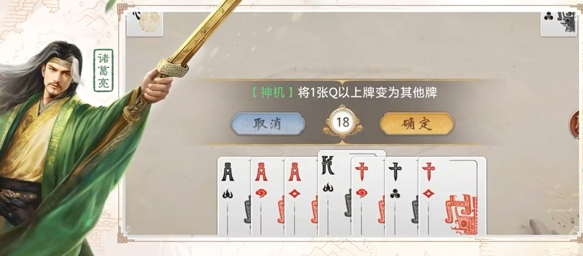 赵云则体现高度战术弹性——通过弃置单张或对子,即可激活万能牌使用权限,大幅提升组合容错率与临场应变能力。相较之下,诸葛亮走的是信息预判与结构优化路径:“妙算”允许查看底牌,提前规划资源调度;“神机”可将大于K的单牌转化为当前场上数量最多的牌型,显著提升出牌效率。二者强度接近,但操作逻辑截然不同:赵云重即时响应,诸葛亮重全局推演。
