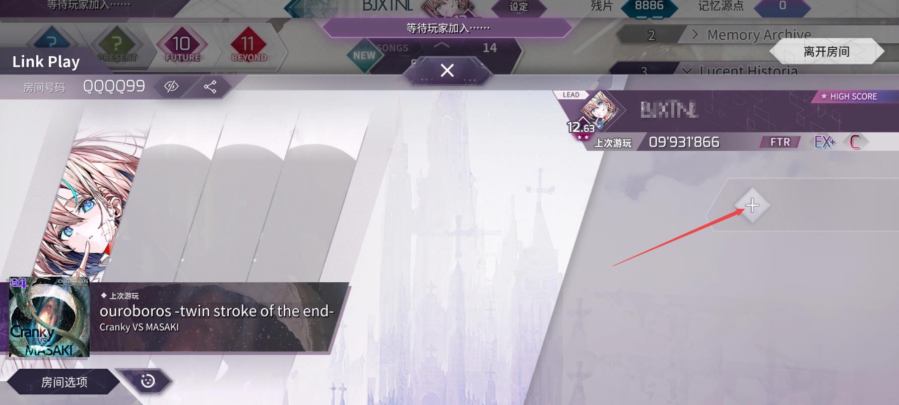 房间创建流程简洁高效:任一好友均可发起新房间,或选择加入已存在房间。在好友列表中选定目标对象后,点击“创建房间”或“加入房间”,即可完成组队。房间内支持自定义曲目池,每位成员可从全曲库中自由选取不同风格乐曲——涵盖摇滚、古典、电子、Jazz等多种类型,对应谱面难度(Past/Future/Beyond)及操作逻辑均独立计算。系统自动采集各曲目FC/AC判定数据,生成统一排行榜。