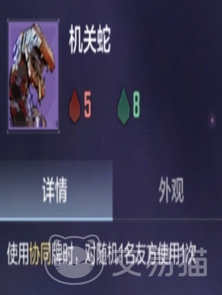 机关蛇具备协同牌双触发特性:对其施放任意协同牌时,除自身生效外,还将随机为一名友方单位同步触发相同效果。在协同牌资源有限阶段,优先分配至机关蛇可最大化单张协同牌的战略价值。