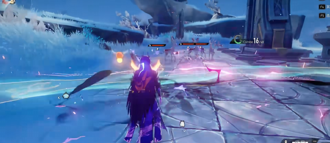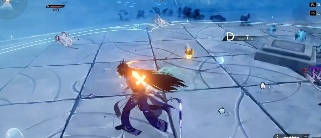 二技能“濯暗鳞”为前向扇形雷伤+状态强化技:命中前方目标后,角色立即进入“玄蛟附身”状态,并对周围敌人施加“酣战”印记。“酣战”使目标在后续受到任意伤害时,额外承受1次雷属性伤害;与此同时,“玄蛟附身”状态下角色免疫受击僵直,且玄蛟实体环绕周身,可吸收一次所受伤害。