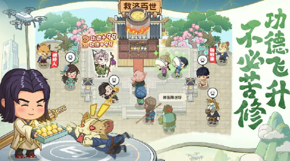 游戏在修仙题材中另辟蹊径,摒弃了传统“打怪—升级—爆装”的线性成长路径。玩家扮演一位暂失神力的仙尊,接手一座荒废道观,需通过积累功德逐步恢复修为。这一“行善即修行”的机制,天然适配偏好低压力、重沉浸的佛系用户群体。日常无需通宵刷图,也无硬性战力攀比要求:弟子夜间打坐静修,白日则可耕作灵田、培育灵植、炼制丹药,整体氛围舒缓治愈。角色设定亦具反差趣味——神仙、精怪皆以“再就业”身份入驻道观,赋予世界观鲜活人情味。