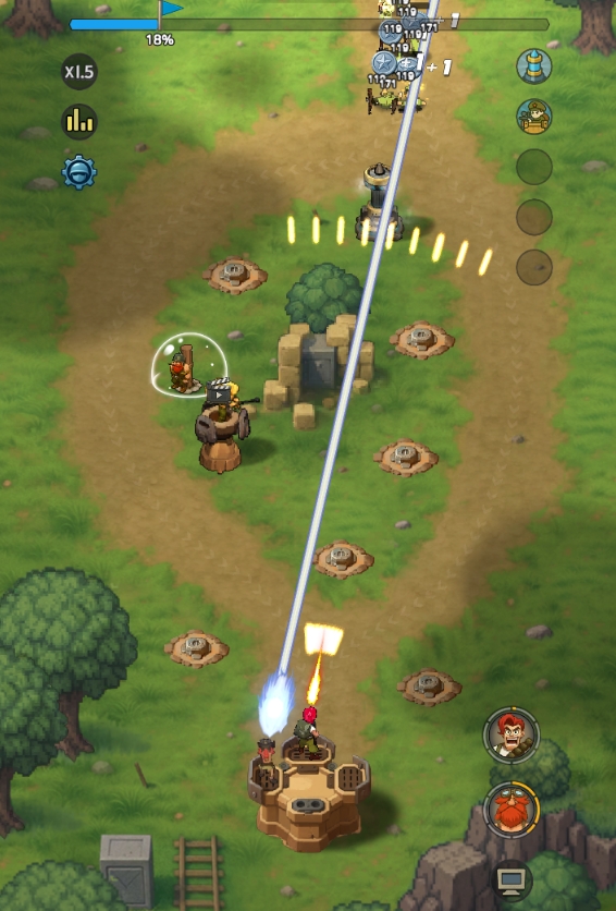 本作采用“塔位构筑+Roguelike强化”双轨驱动模式。每通关一关,英雄击败敌人获得经验并触发升级节点;此时系统将提供三张随机生成的效果牌,玩家需从中择一:可部署一座新防御塔,或为已存在的某座塔添加专属强化效果。需注意的是,初始阶段仅开放防御塔部署选项;只有在地图上成功放置某类塔之后,后续升级中才会出现对应塔种的强化卡牌。此外,每关可布防的塔位数量严格受限,且仅限于预设点位。建议优先将射程短、单体输出高的塔部署于路径交汇口或狭窄隘口,最大化单位时间内的攻击覆盖率;而大范围溅射或长距离狙击型塔,则更适合安置于边缘高地等视野开阔区域,发挥其远程压制优势。
