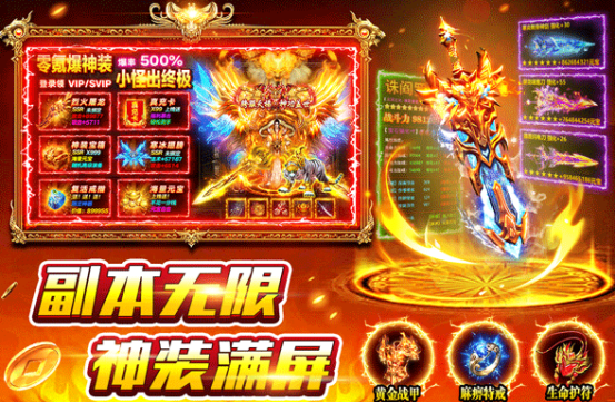 在装备系统方面,完成主线及日常任务后,玩家可逐步解锁神兵锻造功能,大幅提升角色属性;同时,副本掉落机制经过优化,黄金装备爆率实现翻倍,显著提升资源获取效率。游戏开放多类型自由副本,包括诸神之战、屠龙战场等高难度挑战场景,支持单人闯关与组队协作,兼顾策略性与操作爽感。