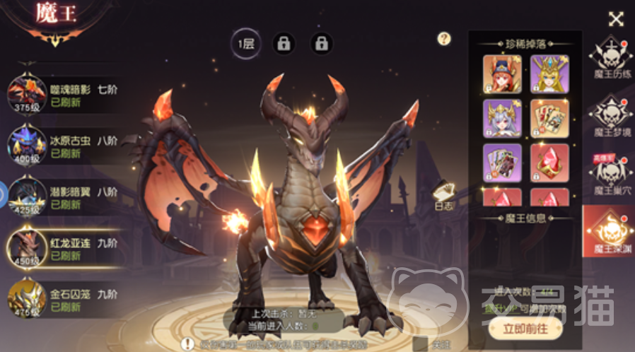 若追求批量获取魔装及高价值圣物,推荐集结队友共同挑战“魔王巢穴”。该玩法设计为团队协作向,通关后全队成员均可获得独立奖励池,是资源积累效率最高的途径之一。