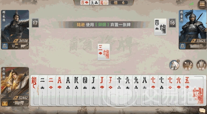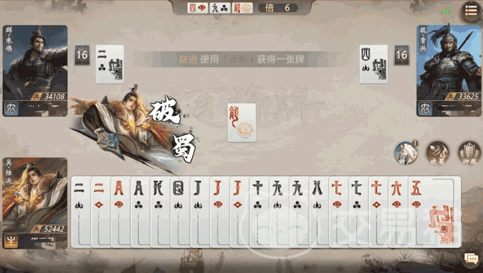 实战中建议优先在手牌含多组对子(如三带一对)、或已积累≥3张点数≥10的牌时抢夺地主身份。此时既能保障“破蜀”高频触发,又能依托高点数组合建立持续压制优势。尤其当对手处于被动跟牌状态时,陆逊可通过连续打出大牌组合迅速瓦解其防守体系。