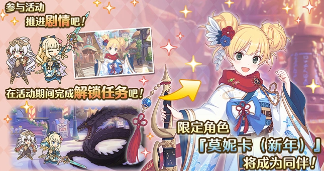 活动核心奖励角色为限定新年莫妮卡,初始获取为1星形态。其专属升星材料——女神石,可通过HARD难度活动关卡稳定掉落,亦可从活动宝箱中随机获得。在合理规划体力并配合一定运气的前提下,多数玩家可达成3星培养目标。但根据当前实战反馈,该角色整体输出能力与机制强度处于中下游水平,非新手向玩家更倾向于将其纳入仓库储备阵容。