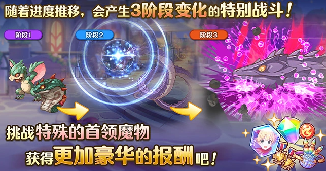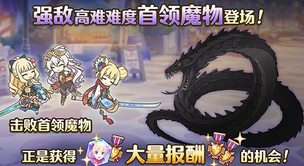 活动奖励体系全面升级:自报酬列表第6档起,所有宝箱均固定包含新年莫妮卡碎片。角色实装后,女神石商店将同步新增其专属兑换项。此外,首次成功讨伐各难度首领后即可开放扫荡功能;其中普通与困难难度无每日次数限制,而高难及特别战斗难度的首领魔物,每日仅允许扫荡1次。