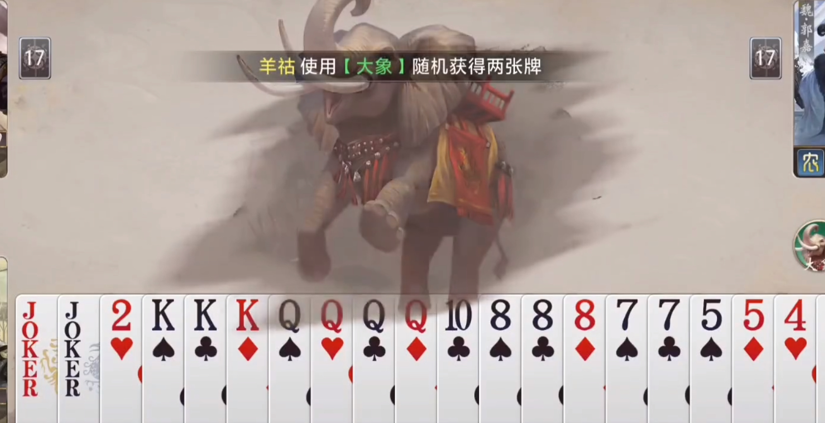 除王炸构建外,【怀柔】亦适用于动态调整手牌结构:如补充顺子缺牌、强化对子数量、拆解对手关键连牌等。若开局成功抢占地主身份,还将激活专属附加技能——例如【大象】效果可额外获得两张随机手牌,进一步扩大牌面容错率。需注意的是,技能使用必须紧密贴合当前手牌构成与局势判断,避免机械堆砌炸弹而忽视整体出牌节奏与压制效率。