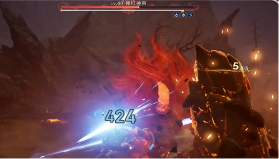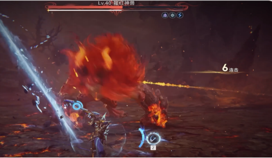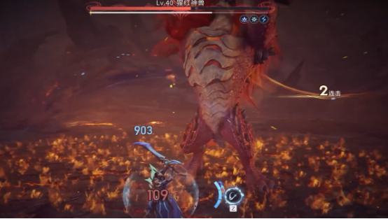 猩红神兽体型庞大,通体裹挟炽烈火焰,周身绒毛持续迸发灼目光芒,对战场形成显著视觉压迫。其首阶段以技能熟悉与节奏试探为主,核心技为扇形范围火击——判定前地面浮现明显红色扇区提示,此时须立即横向位移至安全侧向,切忌正面硬抗,否则将承受高额持续灼烧伤害。