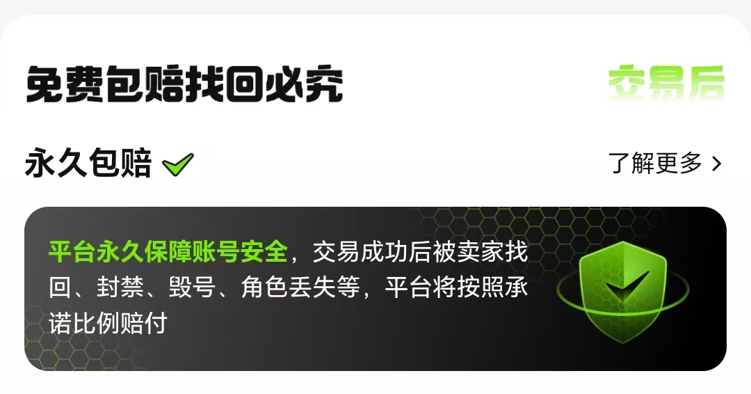 有买家担心交易后会发生角色丢失、毁号、卖家找回、封禁等情况,小编在此保证大可放心。如有意外发生买家可以通过订单进群联系售后专员处理,此外平台全场免费赠永久包赔,买家再也不用担心交钱后卖家跑路的问题。