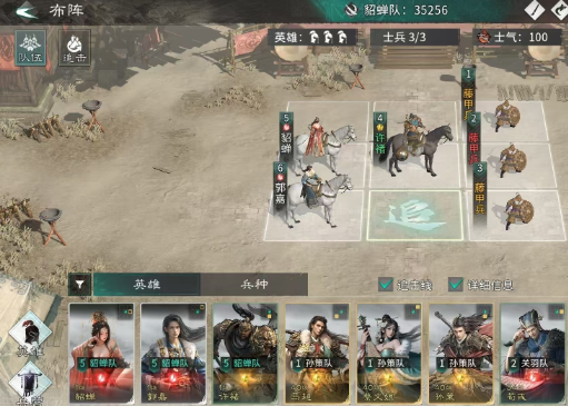 该阵容以许褚为绝对输出核心,周泰承担前排承伤与反伤辅助职能,荀彧提供定向属性增益。三者均属易获取、低培养门槛武将,成型成本可控。推荐通过元宝兑换30个传奇将魂自选箱,优先确保许褚觉醒及关键天赋解锁。站位部署是本体系生效的前提:许褚必须置于周泰与荀彧两人所处位置对应的追击格内;而周泰、荀彧自身不可位于任何追击格上。此布局可触发许褚天赋“背水一决”的锁定机制,并保障增益效果稳定覆盖,新手务必严格遵循顺序操作,位置偏差将导致协同失效。