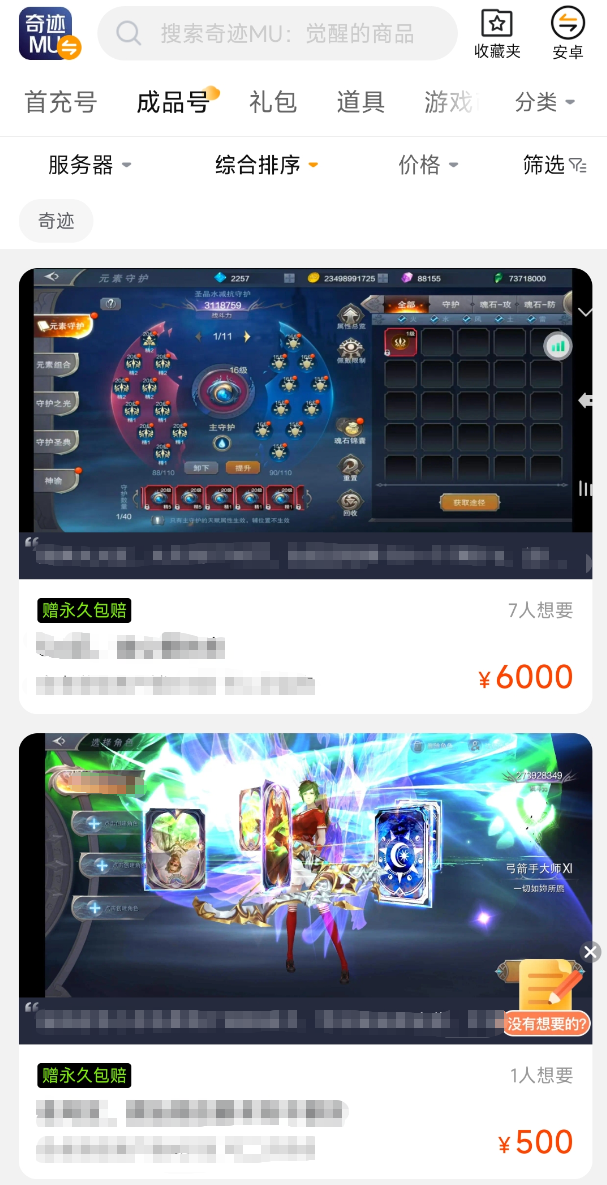 尽管《奇迹MU觉醒》并非当前市场热度最高的MMORPG,但其核心用户群体稳定、生命周期长、游戏内经济系统成熟。正因如此,对交易平台的垂直服务能力提出更高要求——不仅需要覆盖该游戏品类,还需确保在售账号数量充足、质量可控。交易猫设有专项游戏交易分区,其中《奇迹MU觉醒》专区持续保持高活跃度,上架账号涵盖多等级、多职业、多装备配置组合,便于玩家按需筛选高性价比账号。