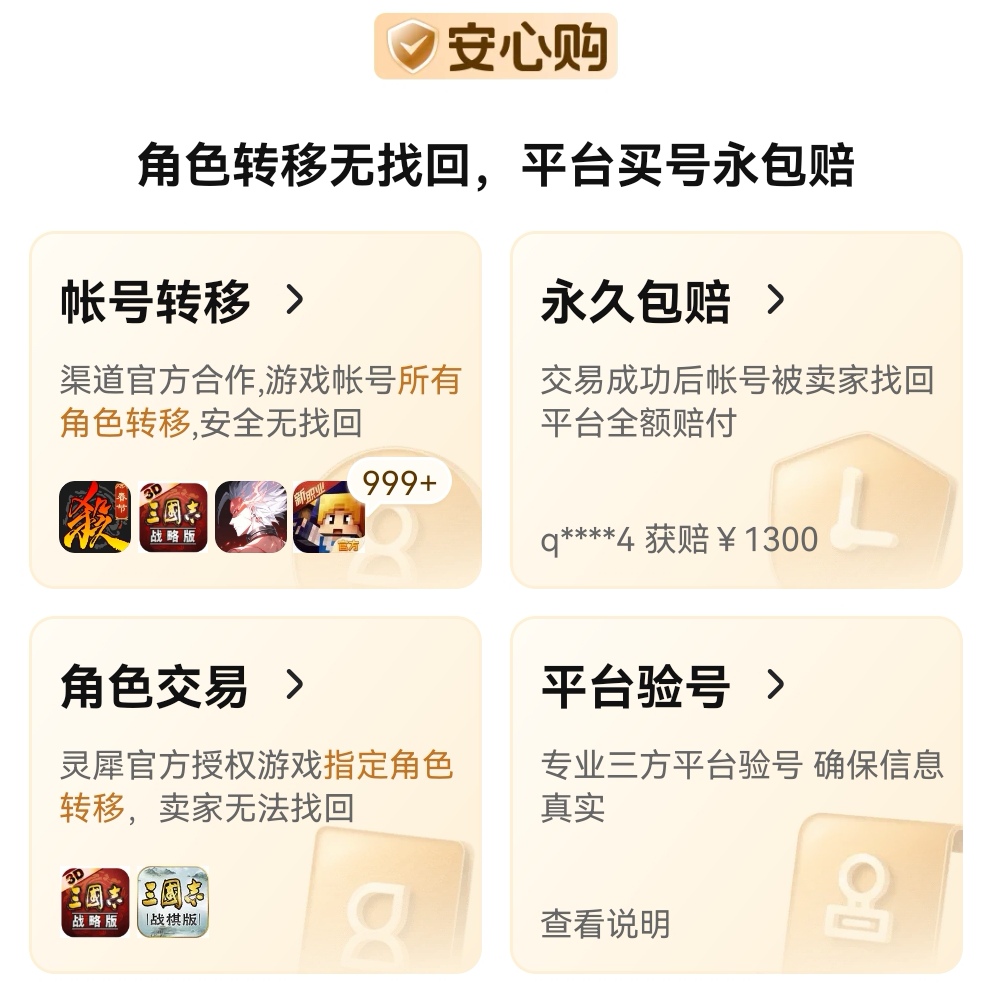在生死狙击账号的买卖过程中,安全保障无疑是玩家最为关心的核心要素,而平台精心推出的“安心购”服务,就备受广大玩家青睐。该服务针对部分账号商品承诺找回永久包赔,交易达成后,我们不用担心对方会有找回等方面的问题,毕竟一旦出现就会有售后协助我们处理,帮助追回或者针对账号购买金额来进行全额赔偿。