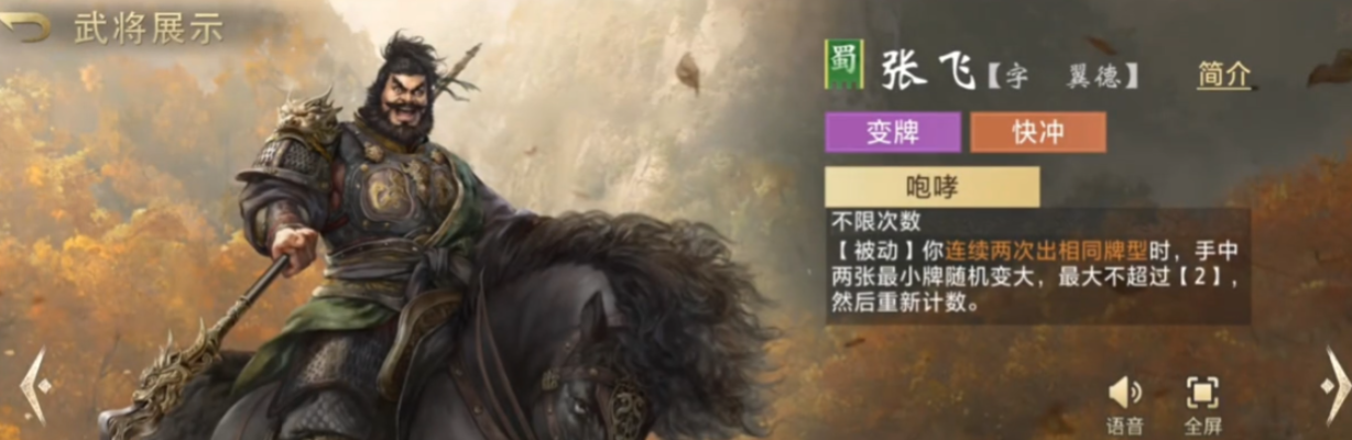 张飞定位为高爆发速攻型武将,技能组以短CD、高倍率单体/直线伤害为核心,附带“破阵”效果——可降低目标所在阵位的防御稳定性,间接削弱相邻单位的承伤能力。该特性使其在开局抢节奏、压制敌方核心输出位或打断关键技能释放链时具备不可替代性,适合偏好快攻压制与战局主动权掌控的玩家流派。