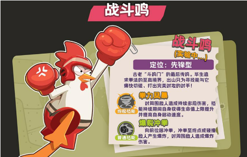 第三位推荐英雄——战斗鸡。主打高机动近战爆发,大招“拳力风暴”具备多段范围伤害效果,同时提升自身最大生命值与移动速度,形成越战越强的正向循环,在持久对抗与团战切入场景中表现尤为突出,输出强度处于全角色梯队前列。