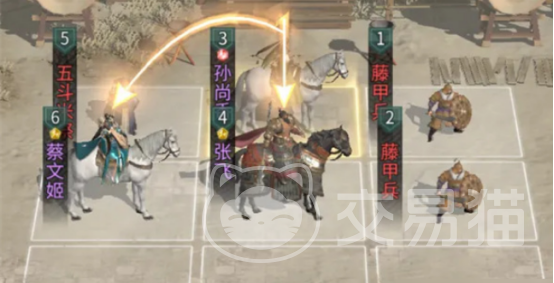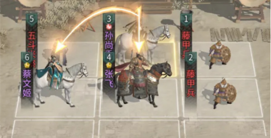 实战布阵需注重格位关系——蔡文姬与张飞应避开彼此追击格,确保行动顺序稳定,避免技能空转;孙尚香则需置于二人追击格内,以触发“连击响应”机制,实现技能链式释放。此布局可显著提升回合效率与伤害密度,在PVE推图与PVP对抗中均表现出色。