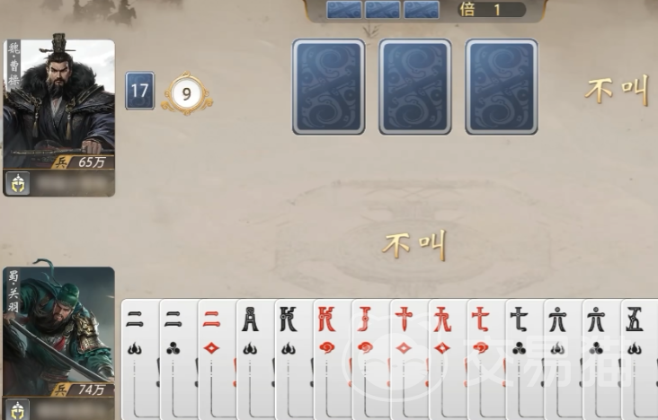 武将技能严格遵循史实人设设计,按功能划分为三类:改牌型、摸牌型、赠牌型。例如郭嘉(技能触发条件:手牌剩余≤2张)可将弃牌堆顶一张牌移回手牌,实现手牌循环利用;关羽(技能触发条件:对手打出顺子)可立即从其手牌中随机抽取一张加入己方手牌;吕布需累计怒气值达6点后,方可发动“无双连击”,一次性打出三张同点数牌构成高阶炸弹。不同角色技能效果存在唯一性,不可复刻。