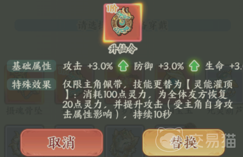 升仙令是新手期至中后期通用性最强的首选法宝。其基础属性加成覆盖生命、攻击与灵力上限,显著增强小凡的站场能力与技能循环效率。主动技能“玄穹引渡”可消耗一定灵力,为全体队友恢复灵力值,并在10秒内提升全队攻击力,使团队爆发节奏更紧凑、技能衔接更顺滑,尤其适配开荒推图与常规团本场景。