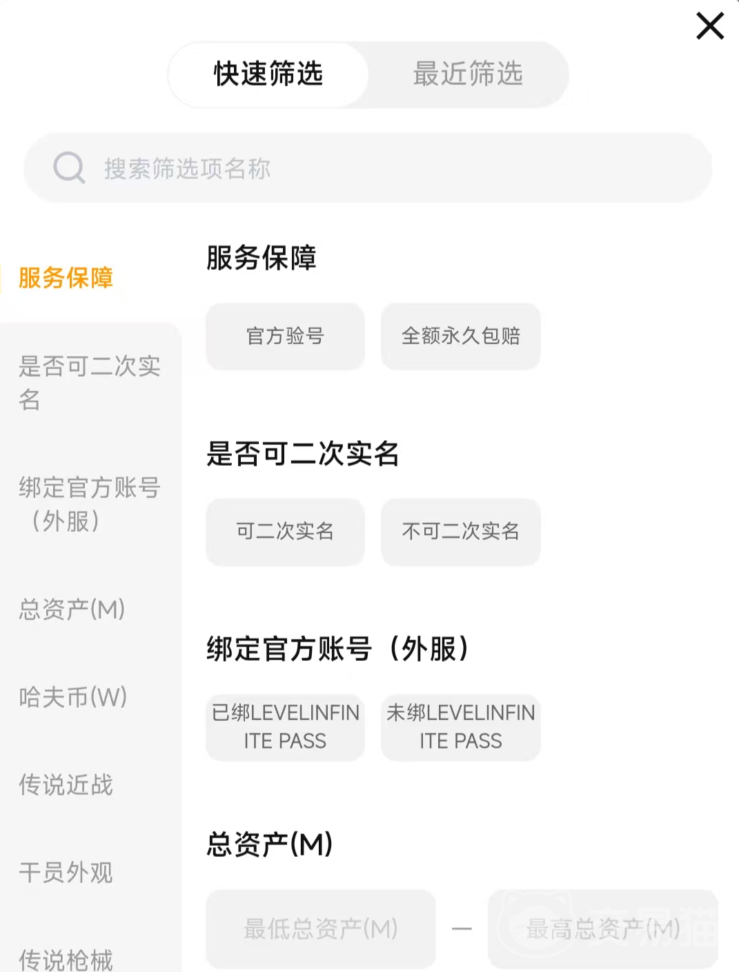 有些玩家在挑选账号的时候,感觉账号数量实在是太多了,而且有一部分自己是完全不需要的,就想要省去这个挑选的步骤,那么交易猫平台刚好是具备这样的快速筛选功能,并且有很多细致的选项,可以让玩家们直接筛选出满意的账号内容,省去了不少的沟通成本。