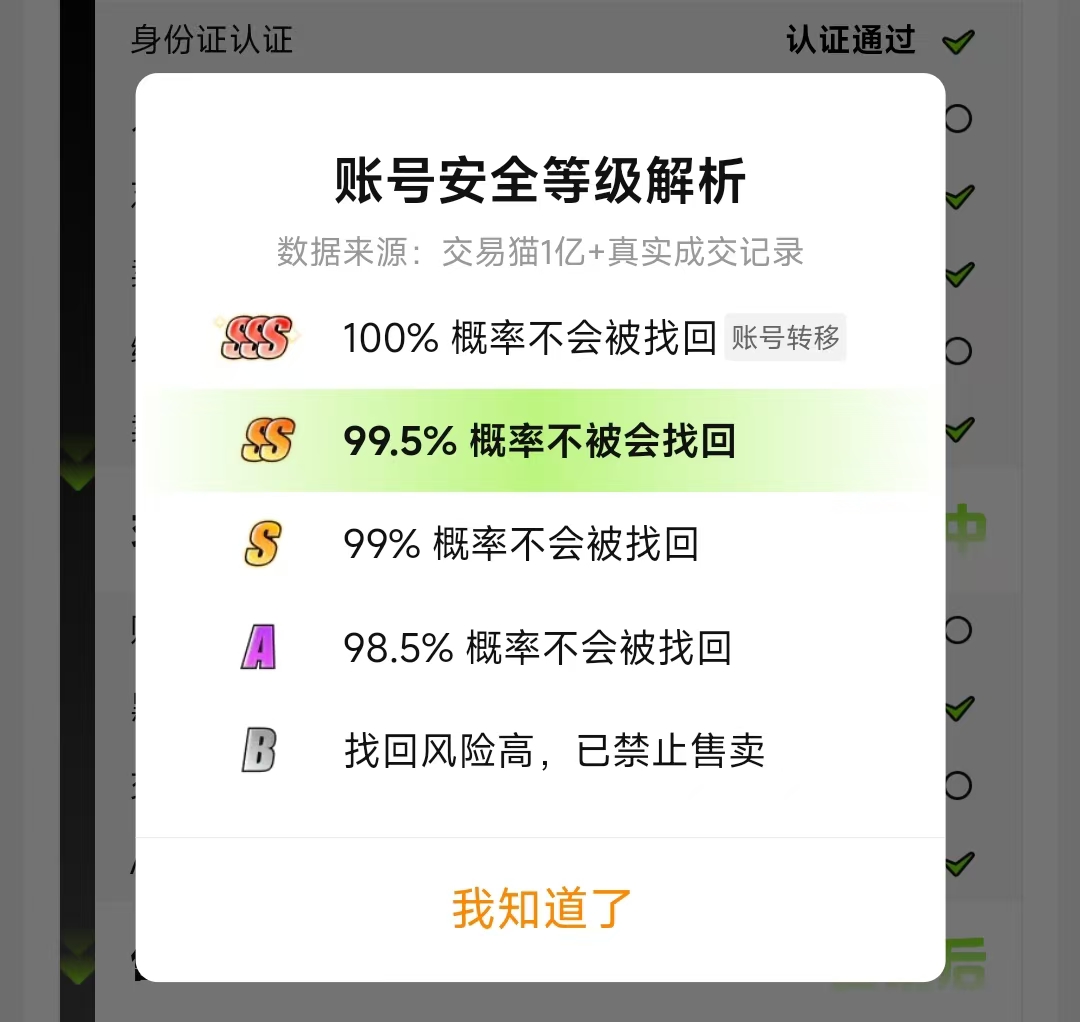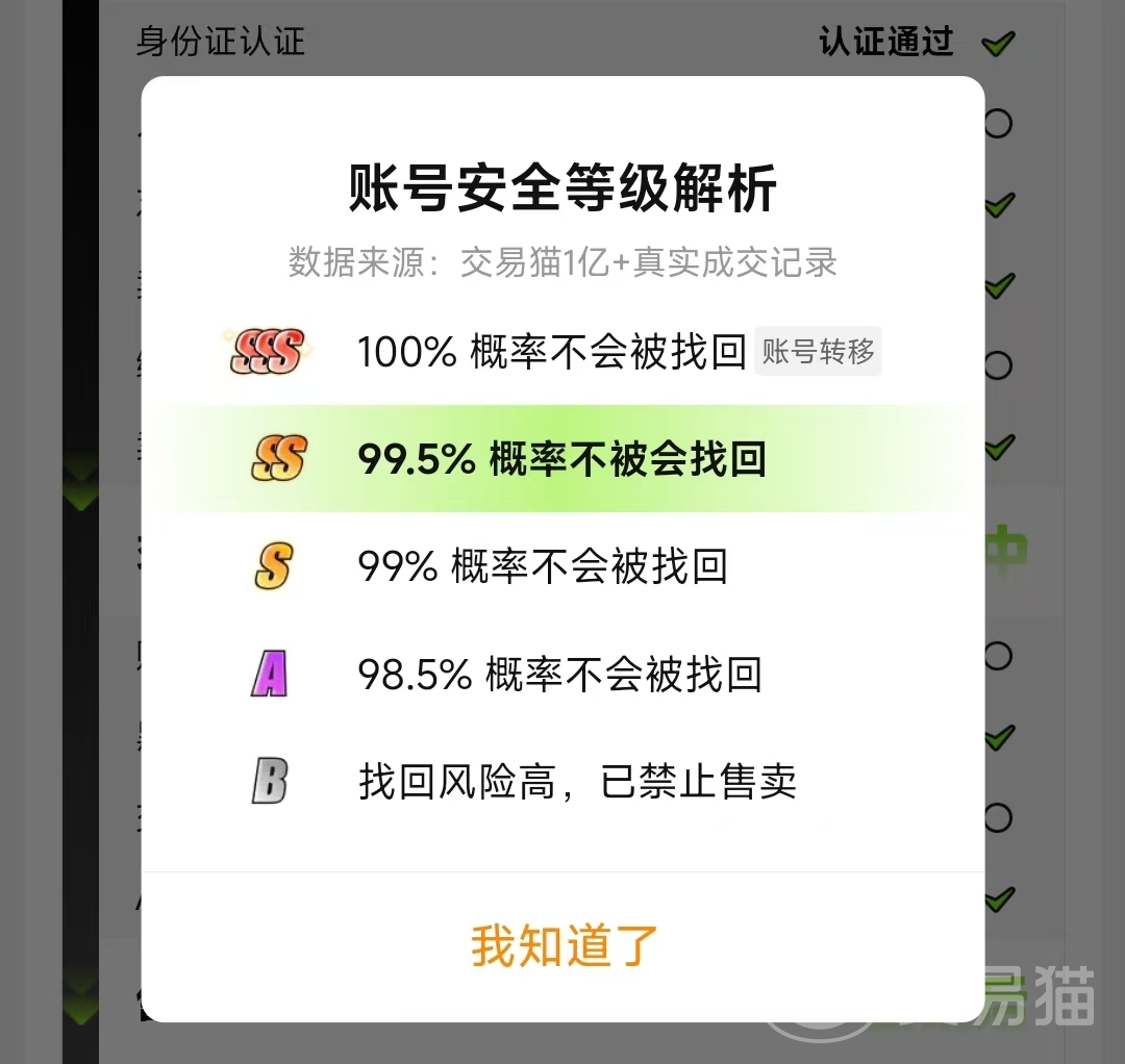 在选择账号时还要注意账号的真实性,好在交易猫上的账号几乎都有永久包赔服务,在账号详细页面上也详细介绍了保障的时间和赔付额度,如果购买的账号价格过高,可以升级服务保障时间和赔付额度,进一步约束卖家的行为。鉴于这款游戏主要以道具为主,在选择时也要关注下账号的安全等级,安全等级是涉及到了交易整个过程中,建议尽量选择高等级的账号,其中sss级别是最高的。
