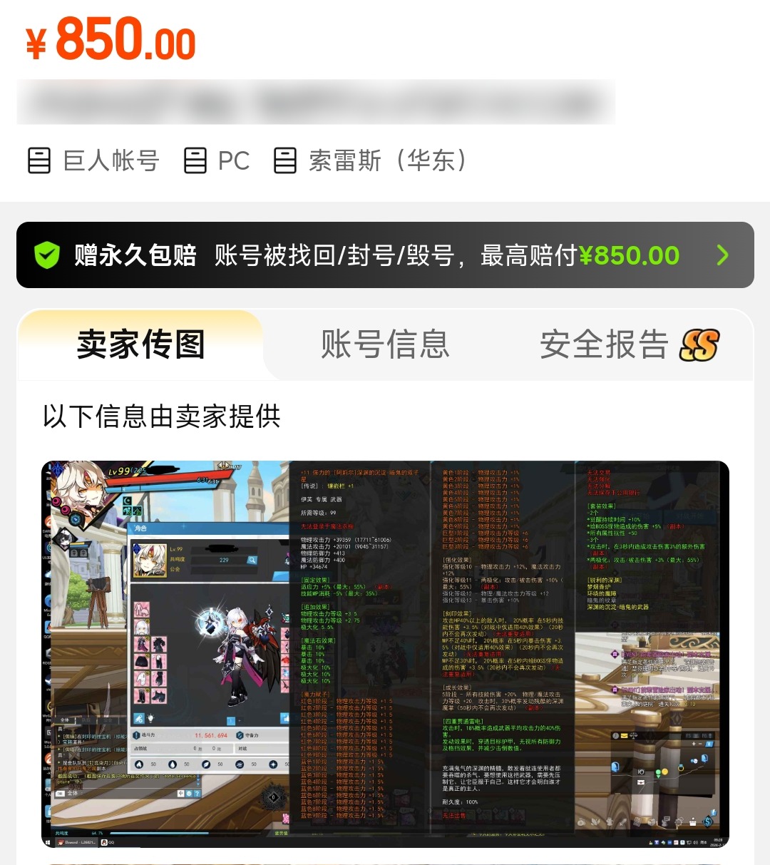 在交易猫上给游戏的成品号都附赠了【永久包赔】服务,这项服务进一步增加了大家的购买意向。很多玩家都担心自己买完号之后,账号又被找回去了,有了这个服务就能让大家大胆下单了。在账号页面上可以看到通过这项服务具体可以赔付多少,基本上能覆盖买号时的费用。