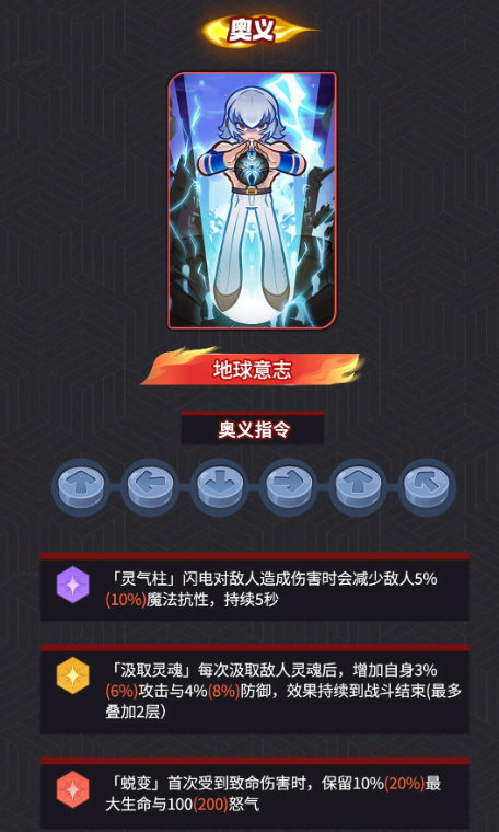 技能体系方面,被动技“灵气柱”可永久降低全体敌方单位魔法抗性,大幅提升队伍整体法伤转化效率,大幅减少对额外增伤辅助角色的依赖。蜕变技提供一次濒死保护:首次承受致命伤害时,保留10%至20%生命值并立即恢复100至200点怒气,确保大蛇能立刻衔接高阶技能反打。而“汲取灵魂”则同步强化攻击与防御属性,延长其在持久战中的有效输出窗口。