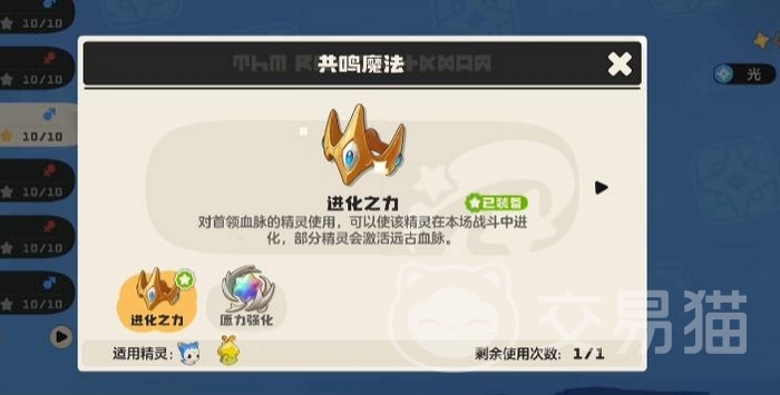完成新手引导后,“进化之力”将自动解锁并存入背包。对战中需手动选择该道具,随后任一技能释放均可激活迪莫的形态跃迁。需注意的是,该效果为一次性使用,使用后须前往地图传送点重置次数。