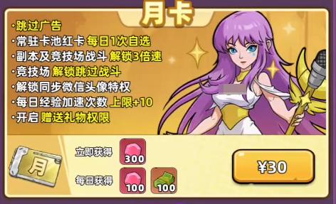 具体来看,生存33天终身卡的核心权益包含多项战力与养成加成。首项为广告跳过功能——虽不能完全屏蔽广告展示,但支持一键跳过,提升操作流畅度。其次,角色招募享受永久9折优惠,长期累积可节省可观抽卡资源。